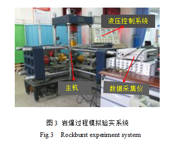 深部巖爆過程模擬實驗系統由主機、液壓控制系統和數據采集系統三大部分組成,如圖3所示。