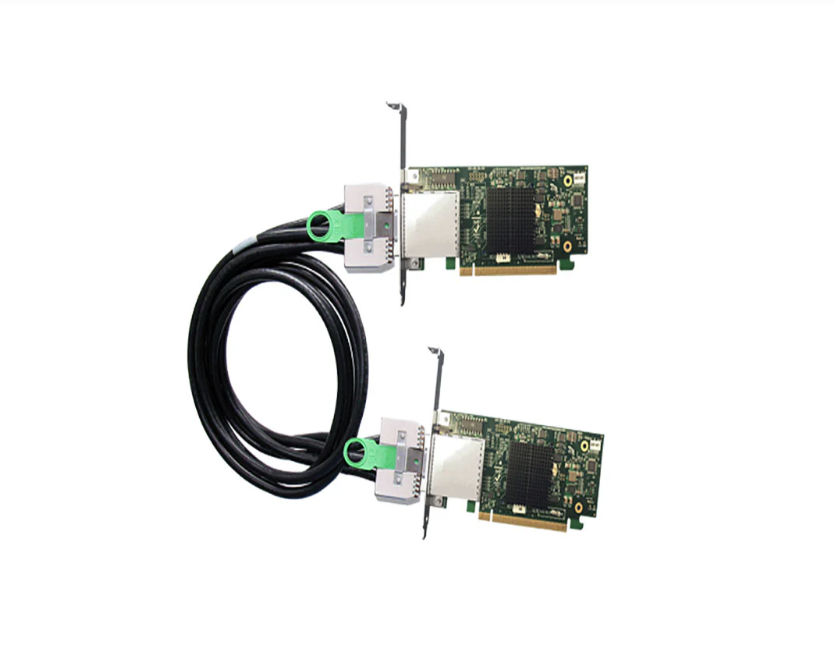 PCIe x16 Gen 3交換機線纜適配器插入服務器,并連接到PCIe x16 Gen 3交換機目標線纜適配器。