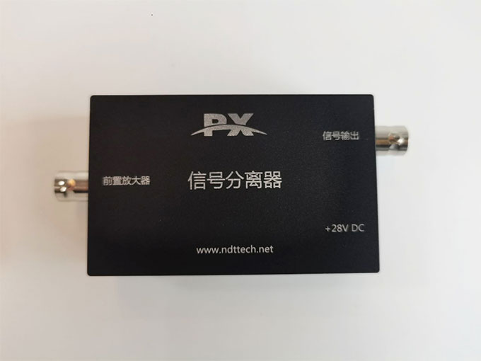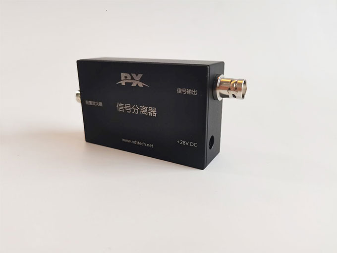 PXDCBlock是專為內(nèi)置放大聲發(fā)射傳感器且后端采集系統(tǒng)不能向前載波供電的場景所設(shè)計(jì),匹配通用的數(shù)據(jù)采集卡或示波器等使用。前端BNC接口連接內(nèi)置放大聲發(fā)射傳感器,后端BNC接口連接示波器或通用數(shù)據(jù)采集卡等;單獨(dú)適配器供電(AC220V轉(zhuǎn)DC28V)。