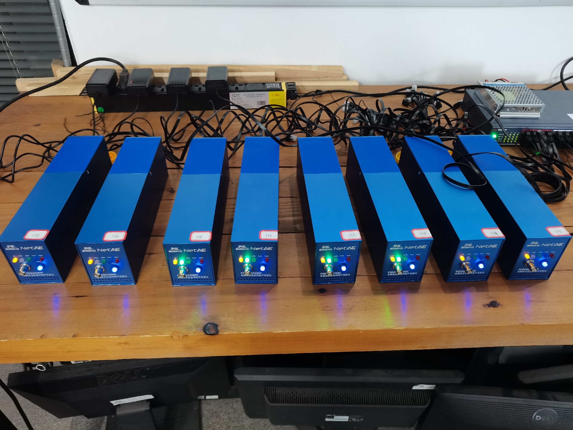 分布式多通道在線采集聲發射檢測系統,由多個單通道聲發射儀組成,通過網線連接實現在線采集。